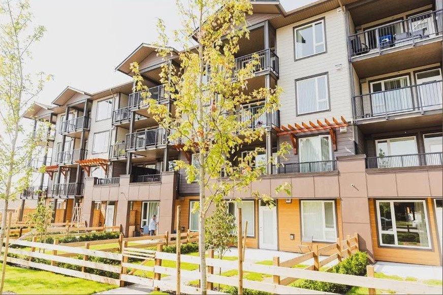 This 33-unit affordable apartment building in Gibsons offers studio, 1-bedroom, 2-bedroom, and 3-bedroom units. Several of these suites are accessible, making them suitable for seniors or others with mobility challenges. Built in 2025, each unit features a heat pump/air conditioner to lower energy costs. The building has shared laundry, several lovely common areas, and is centrally located near transit and shops.